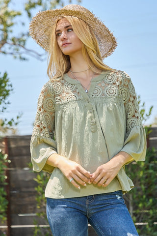 Porcelain Garden Two Tone Toile Print Blouse in Green