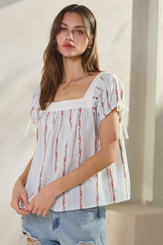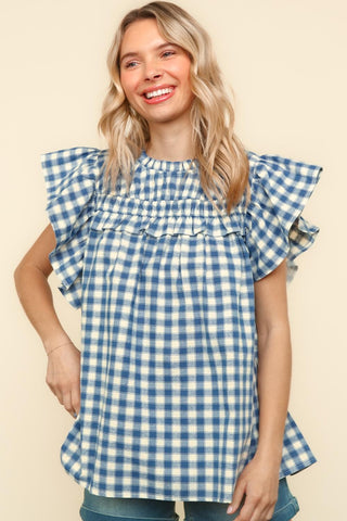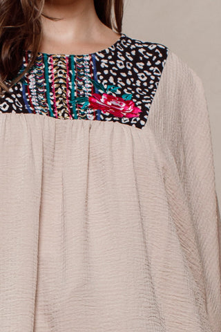 Porcelain Garden Two Tone Toile Print Blouse in Blue