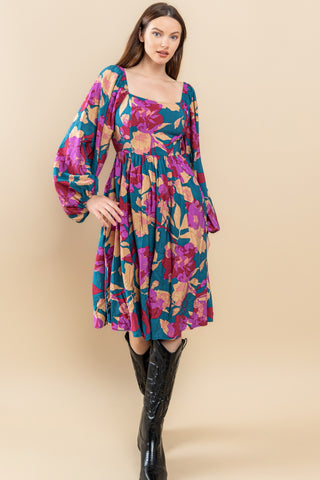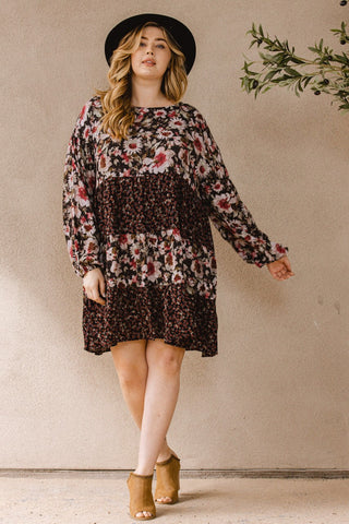 Babydoll Floral Patchwork Dress with Side Pockets