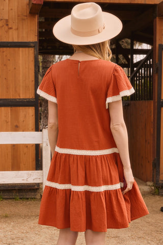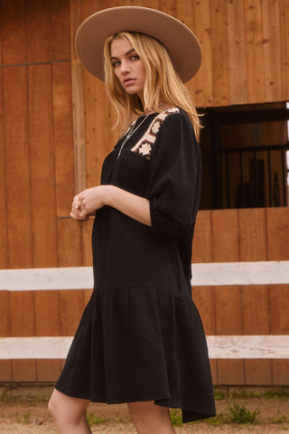 Embroidery Babydoll Tired Mini Dress