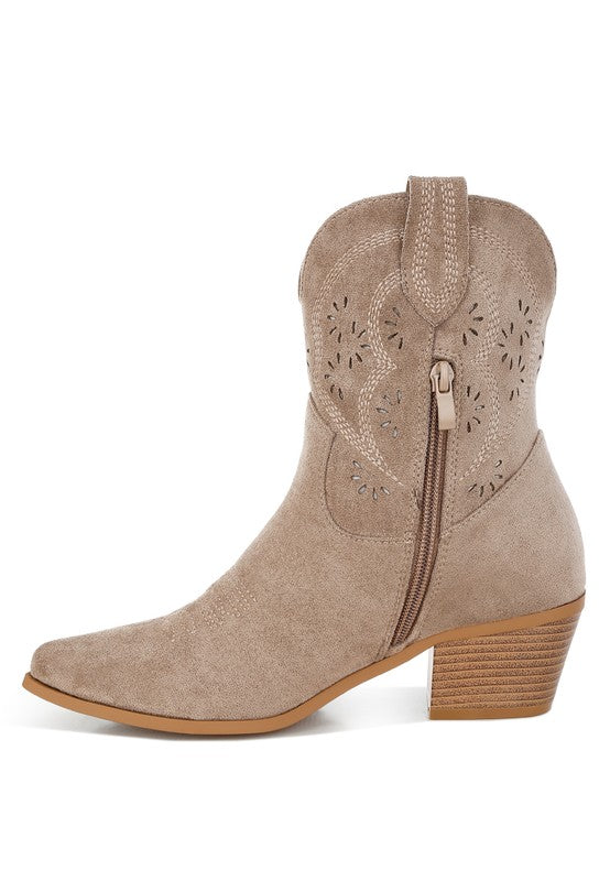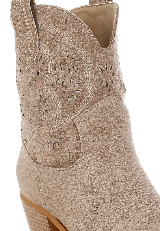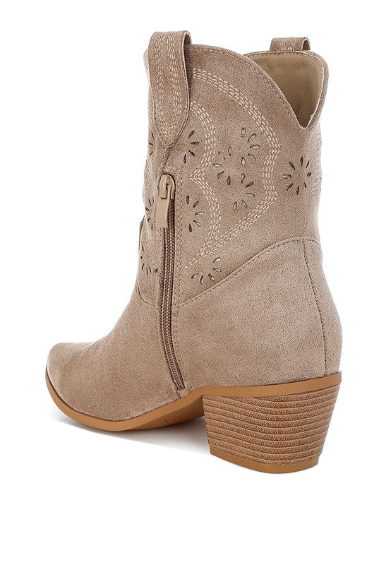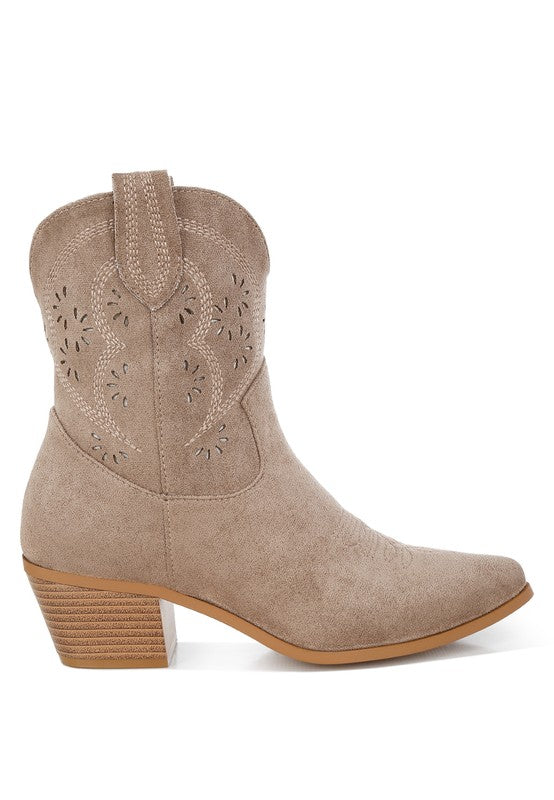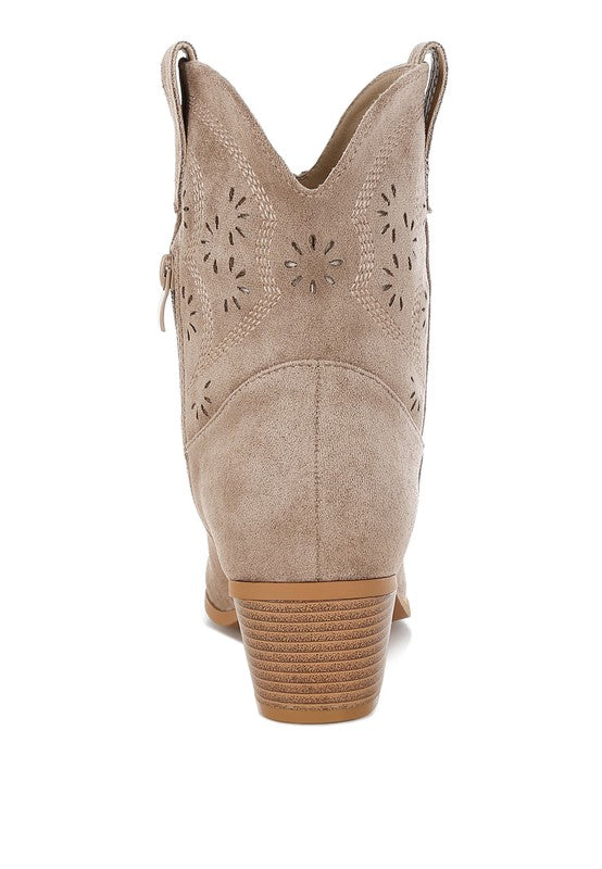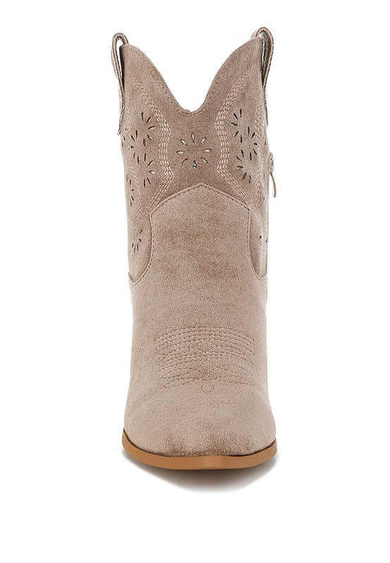 The cut out cowboy boots have an elegant chic style with the perforated details and the gorgeous matte finish of the microfiber upper. The comfortable cushion insoles cut strain while the pull tabs are convenient. Pair these with some London Rag outfits for a ravishing and stylish ensemble.